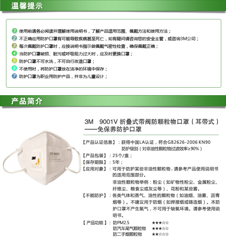 产品名称: 3M 9001V口罩