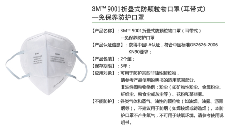 产品名称: 3M9001防尘口罩
